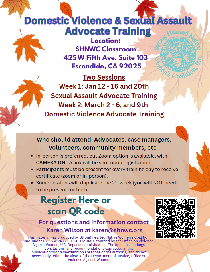 January 12, 2026 - January 16, 2026 Domestic Violence & Sexual Assault Advocate Training SHNWC DVSA Advocate Curriculum Training.PDF